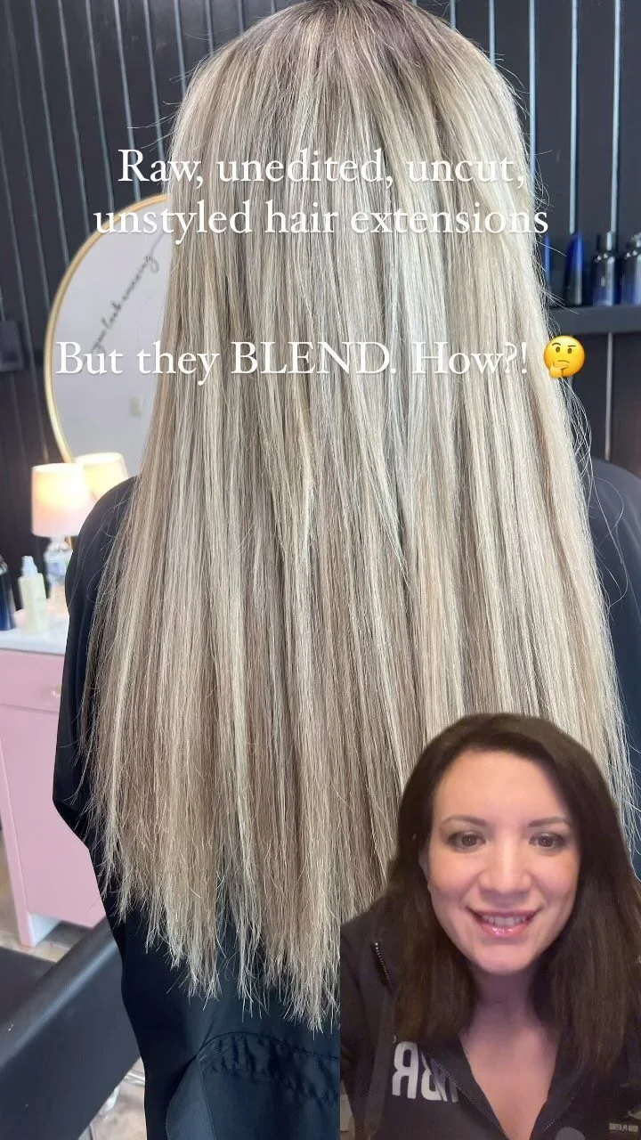 Beaded Row Extensions utilizing hand tied wefts. Our method is the most natural looking and feeling hair extensions you will find.